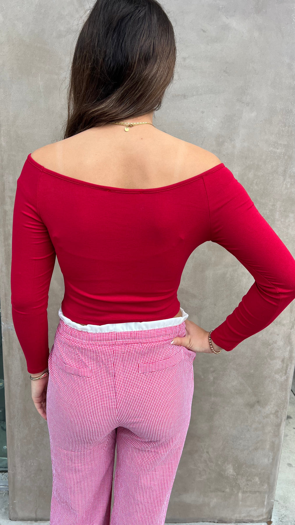 The Cherry Ruched Off-Shoulder Long Sleeve Top is a bold yet feminine essential made to stand out. Designed with a flattering off-the-shoulder neckline and soft ruching at the bust, this top hugs your curves while staying comfortable and stretchy.