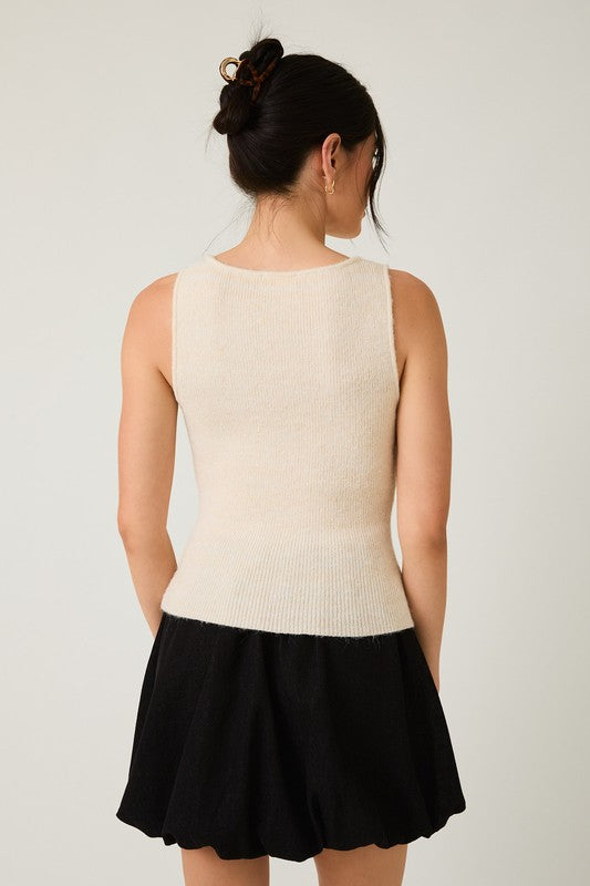 Timeless and versatile, Amelie’s Knit Top is crafted in a soft ivory knit with a flattering sleeveless silhouette. Minimal yet chic, this top layers beautifully under blazers and cardigans or shines on its own with denim, skirts, or tailored pants. A true wardrobe staple you’ll reach for season after season.