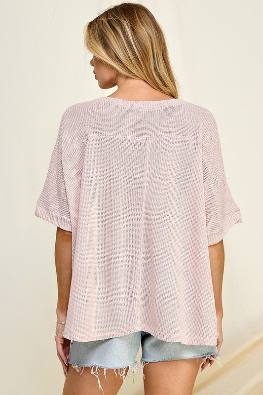 This Blush Knit Top boasts a lightweight, loose fit, adding a touch of elegance to any outfit.83% POLYESTER 17% RAYON