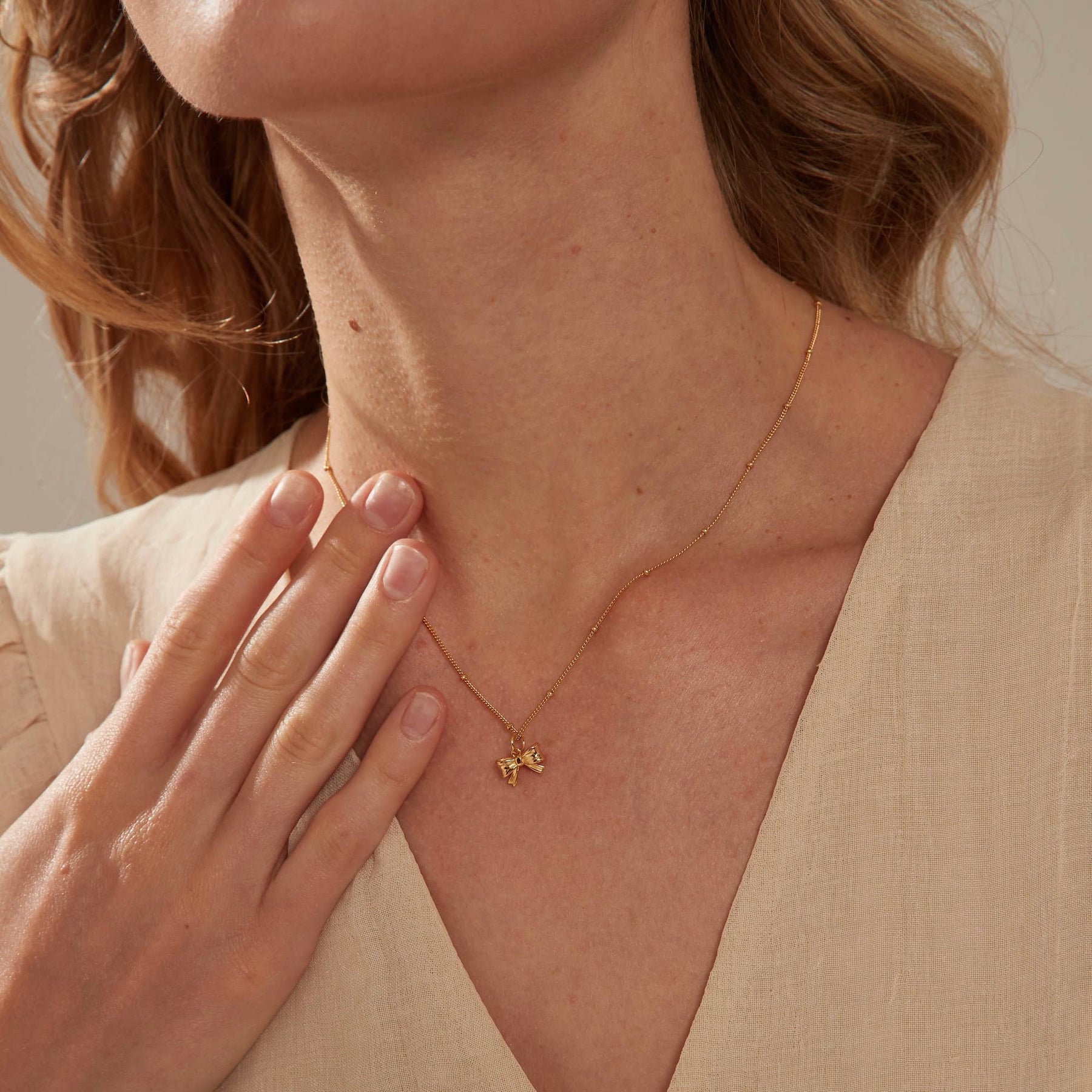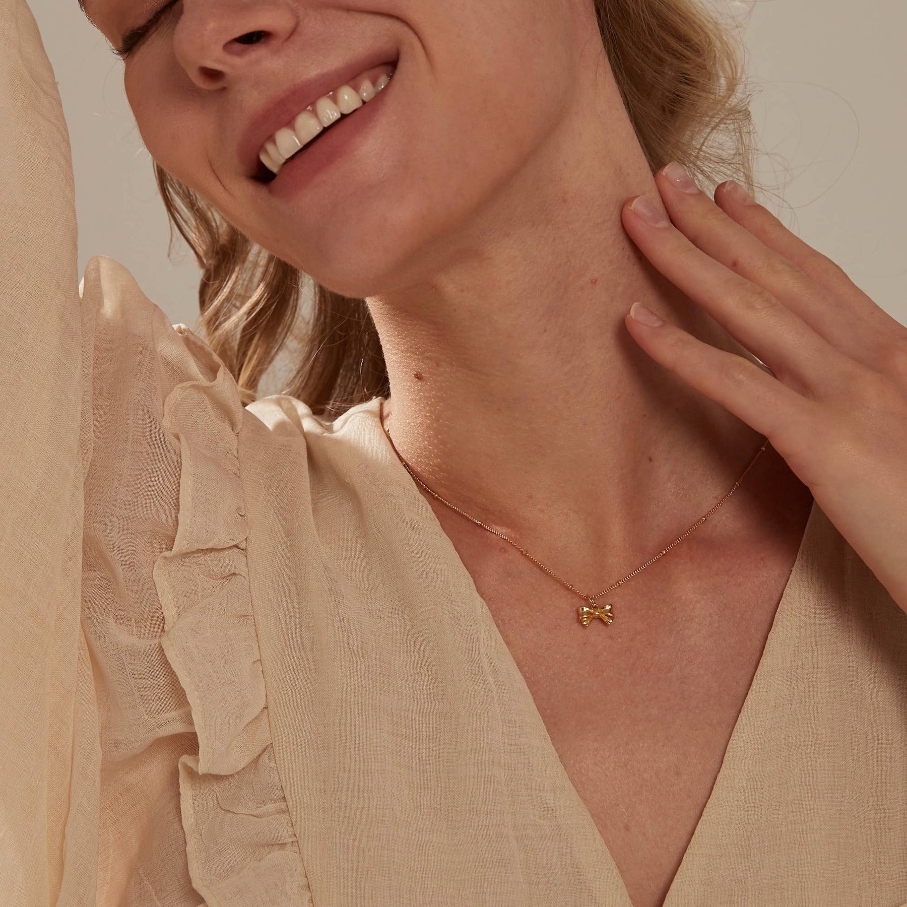 Dainty Bow Tie Bowknot Charm Necklace in 925 Sterling Silver