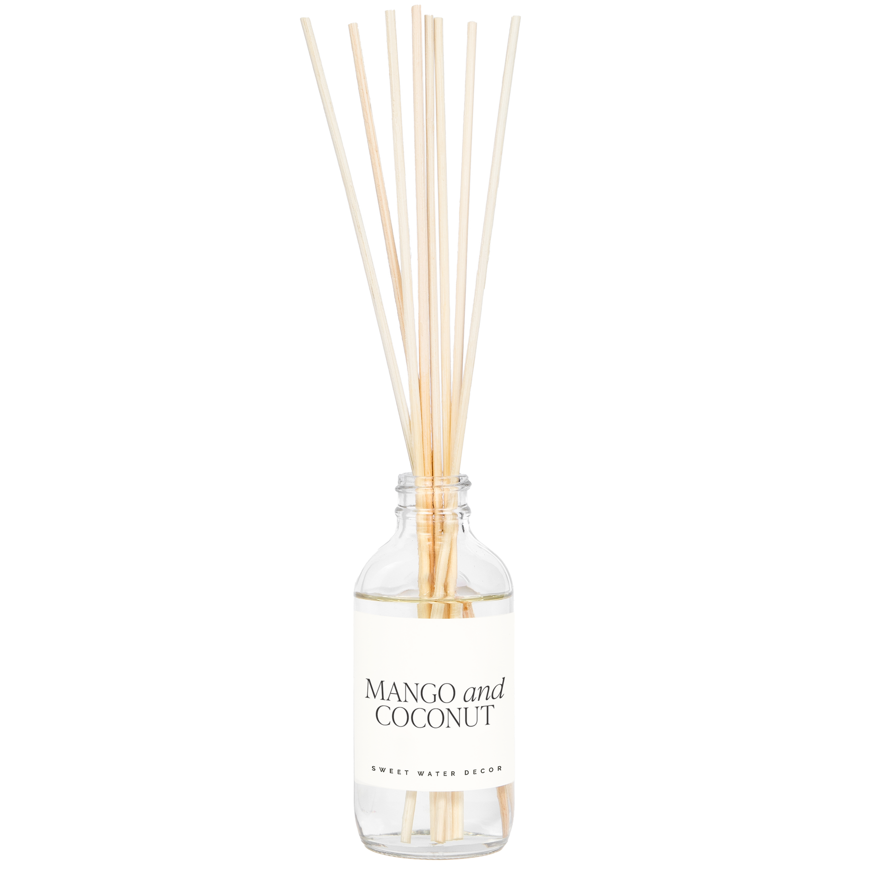 SCENT NOTES: • Top: Pineapple, Mango • Middle: Orange, Peach • Base: Coconut Milk, Sugar If you like Piña Coladas and getting caught in the rain, you'll love our Mango + Coconut reed diffuser! Sweet fruit notes topped off with creamy coconut milk will have you on island time in no time! DIFFUSER INFO: • Size: 3.5oz | 1.75 x 1.75 x 10" With Reeds • Scent Lasts For 4+ Months • Diffuser Oil Color May Vary • If Scent Starts to Become Faint, Turn Reeds Upside Down • Gluten Free, Lead Free, Phthalate Free • Non-toxic, Premium Fragrance Oils • Made in the USA | Handmade in Pittsburgh, PA • Style No. R130C CATEGORIES: • Spring, Summer, Mother's Day, Birthday, Housewarming, Teacher Gift, Hostess Gift, Tropical, Beach, Coastal, Nautical